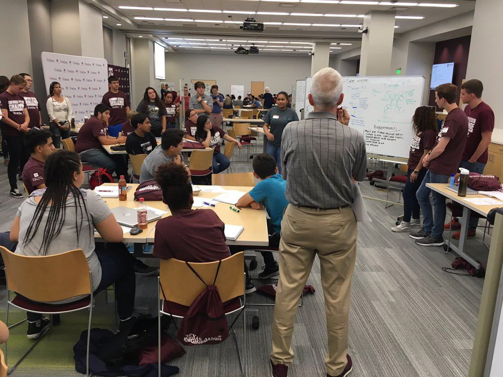 Chevron, Project Lead the Way (Texas) and Texas A&M University partnered to create a weekend design challenge for High School Project Lead the Way students modeled after the University's "Aggies Invent" challenge. The logo created for this event was used on the participant shirts and water bottles.